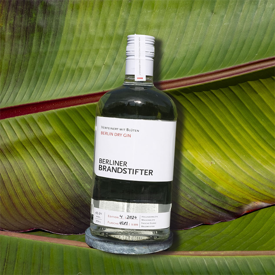 Der Berliner Brandstifter Gin präsentiert sich floral und frisch, in perfekter Harmonie mit dem minimalistischen Design seines Labels. Diese Einfachheit spiegelt sich auch im Genuss wider – ob pur gut gekühlt oder in der klassischen Kombination mit Tonic Water.