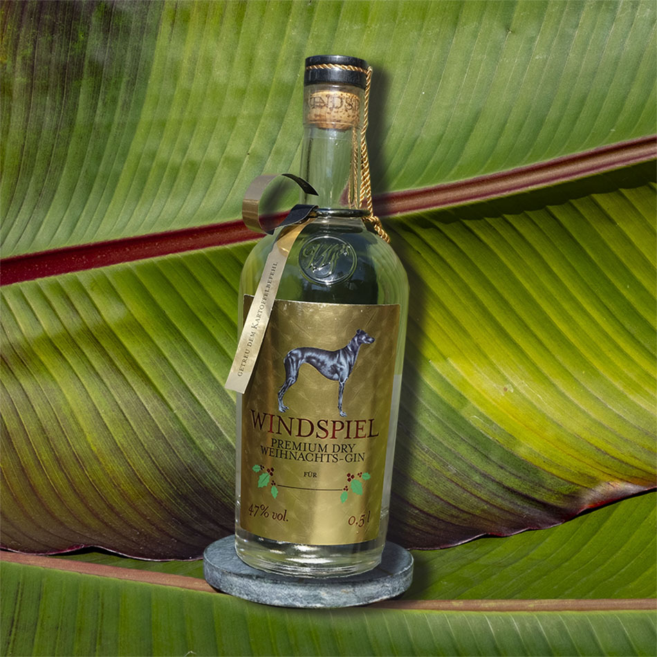 Der Windspiel Premium Dry Weihnachts-Gin vereint winterliche Aromen wie Zimt, Bratapfel, Vanille und gebrannte Haselnüsse in einem edlen Destillat, veredelt mit funkelnden Goldflocken. Die Basis bildet Kartoffelalkohol aus regionalem Anbau, hergestellt in aufwendigen Destillationsprozessen. Inspiriert von Friedrich dem Großen und seiner Liebe zur Hunderasse Windspiel, bietet dieser Gin ein festliches Geschmackserlebnis mit langanhaltendem Abgang. Perfekt serviert mit Tonic, Zimtstange, Apfelschnitz oder Orangenzeste, wird er zum Highlight der Adventszeit und Bescherung. Ein Genussmoment, der Tradition, Moderne und die Magie der Weihnachtszeit verbindet.